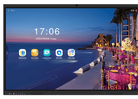 Современные панели с сенсорным управлением, 4К-разрешением и встроенной системой Android. Подходят для школ, офисов и конференц-залов.